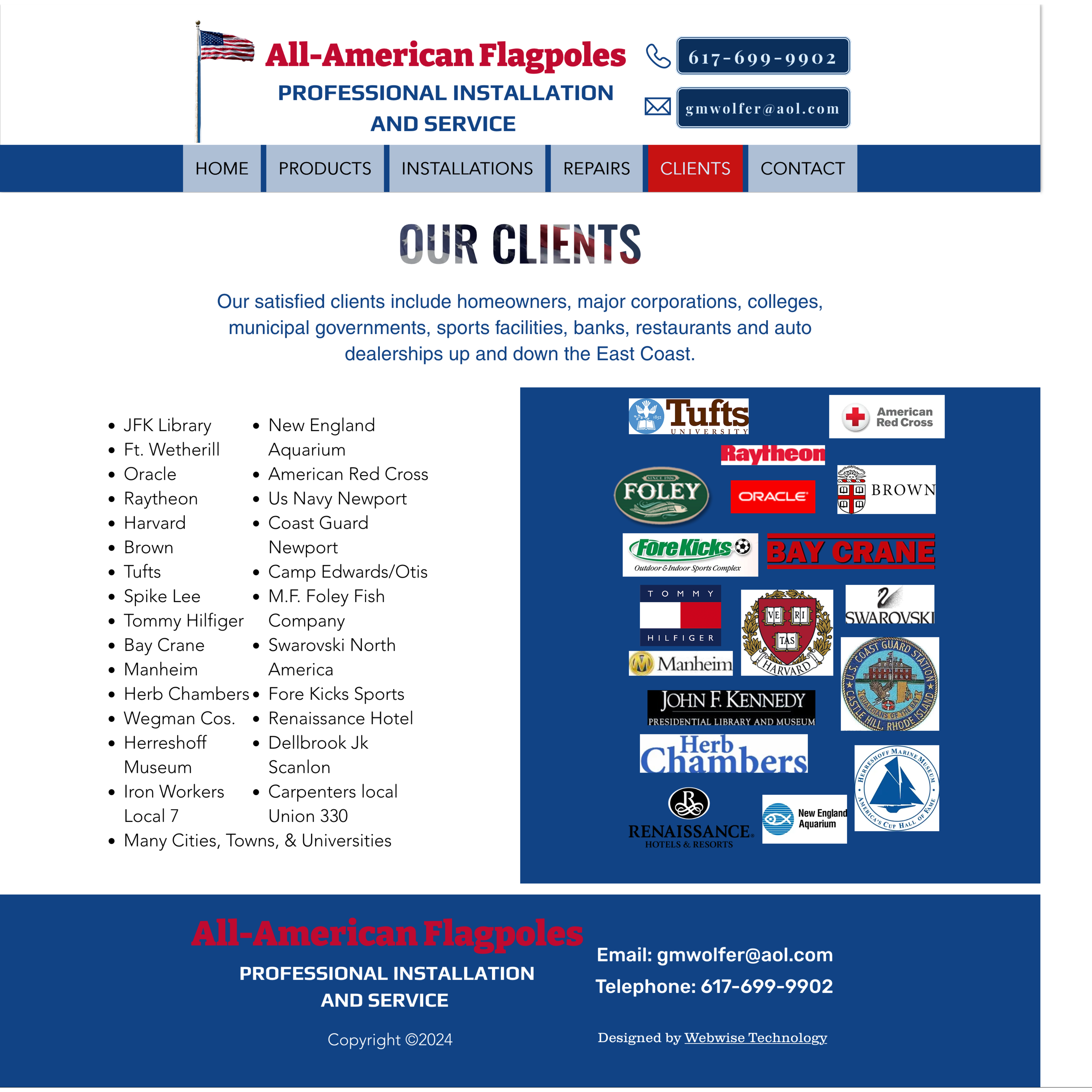 All-American Flagpoles Clients page