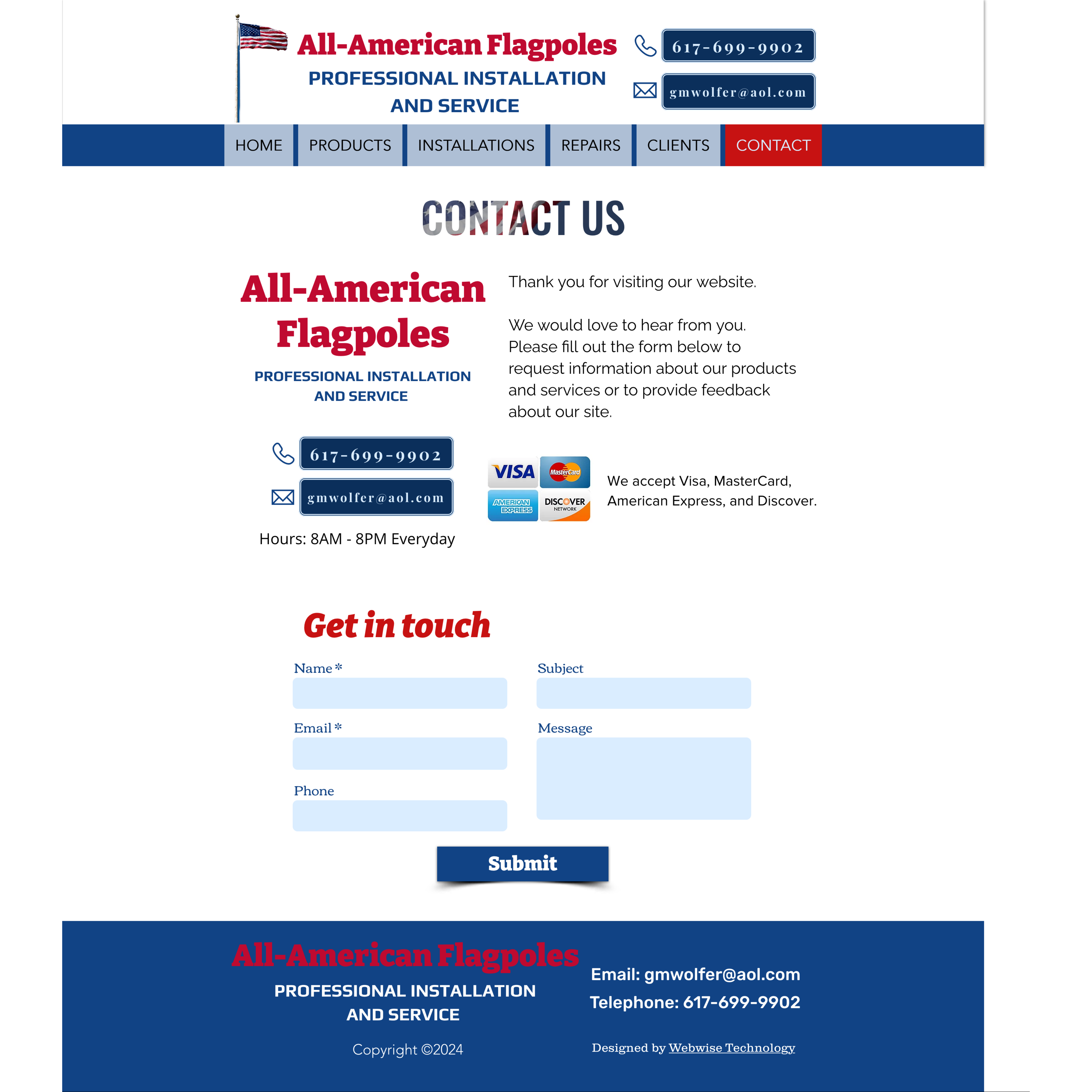 All-American Flagpoles Contact page
