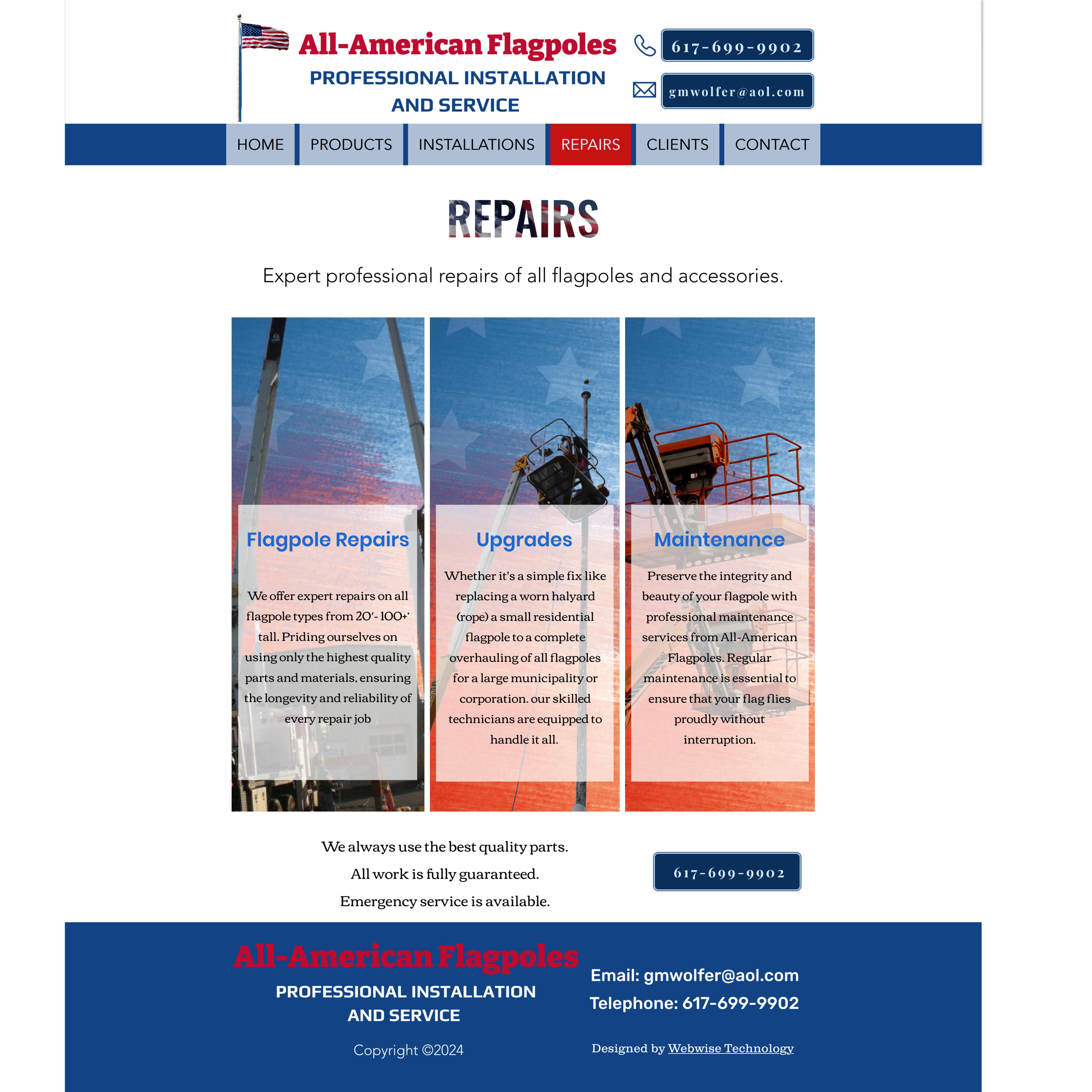 All-American Flagpoles Repairs page