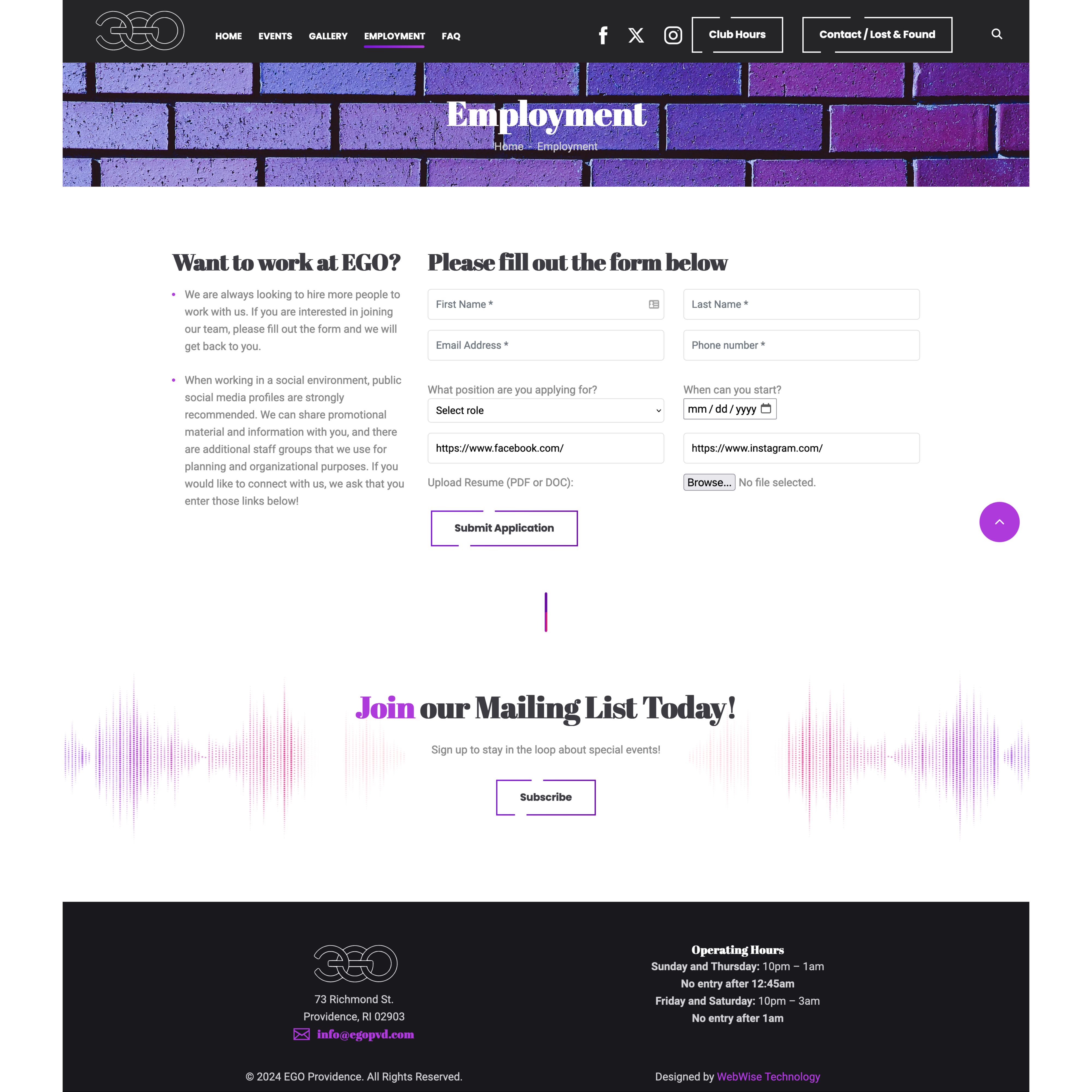 EGO Employment page