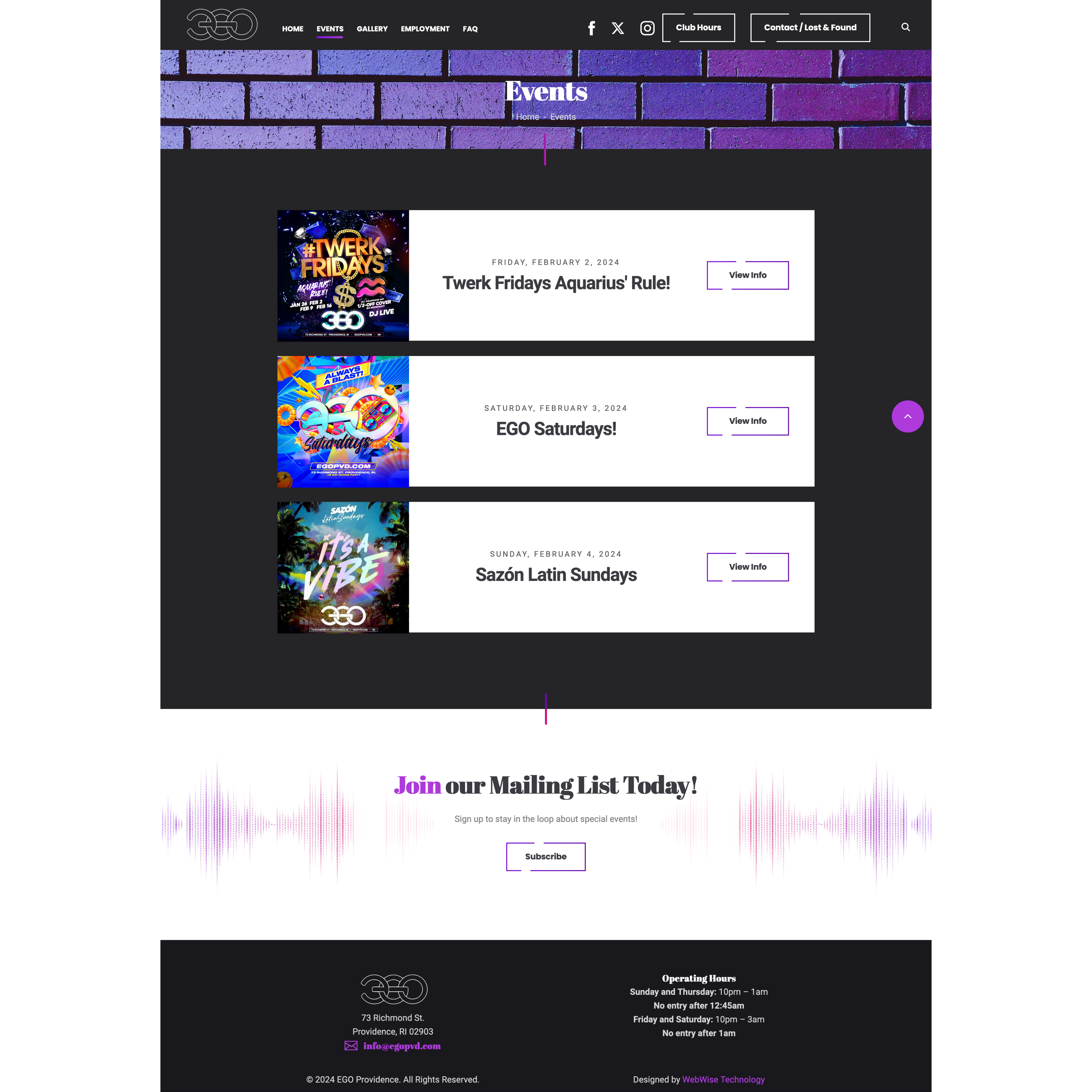 EGO Events page