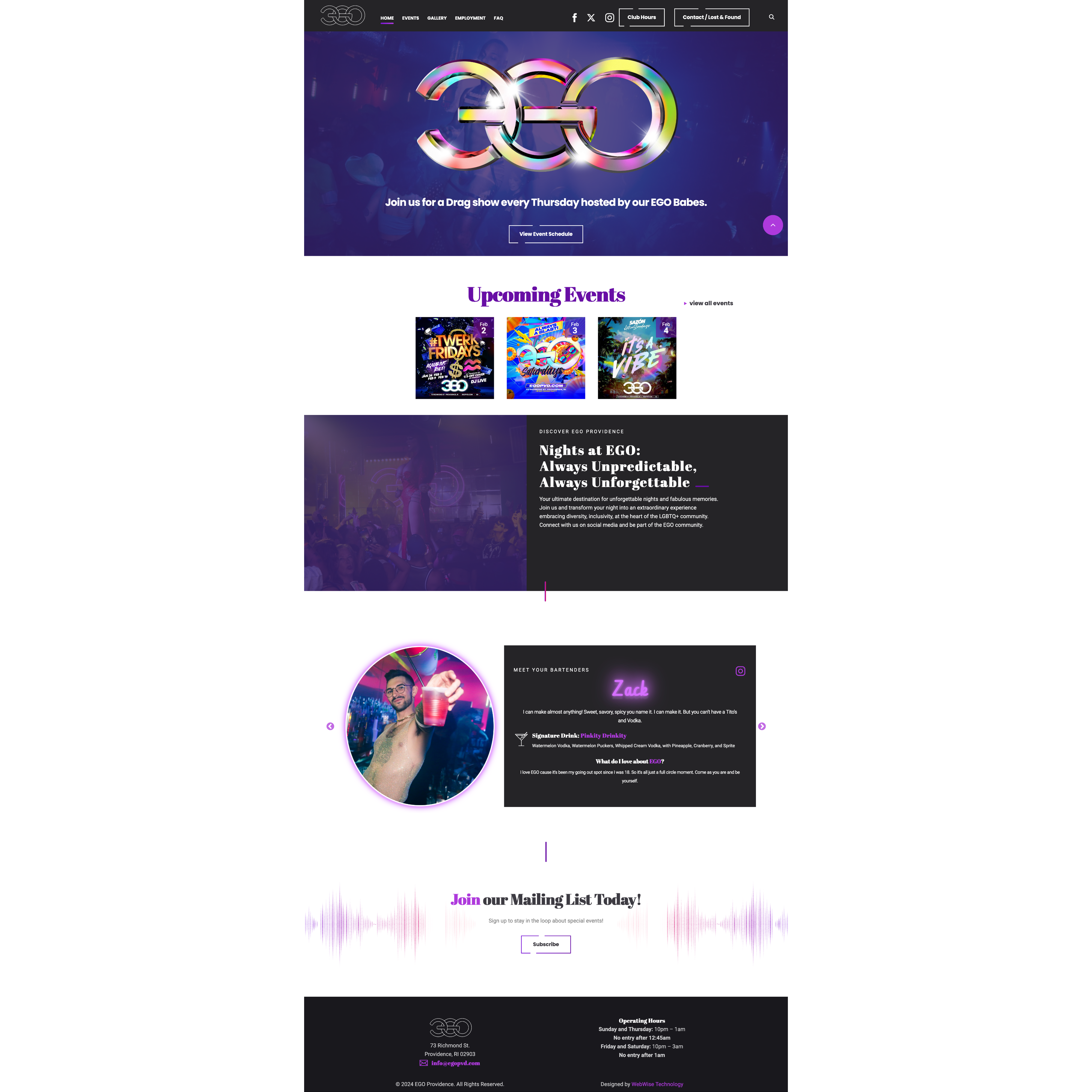 Multipage Website design and Event Scheduling for Boston Event and Club Promotion. Full Backend functionality using Directus as a Content Management System.