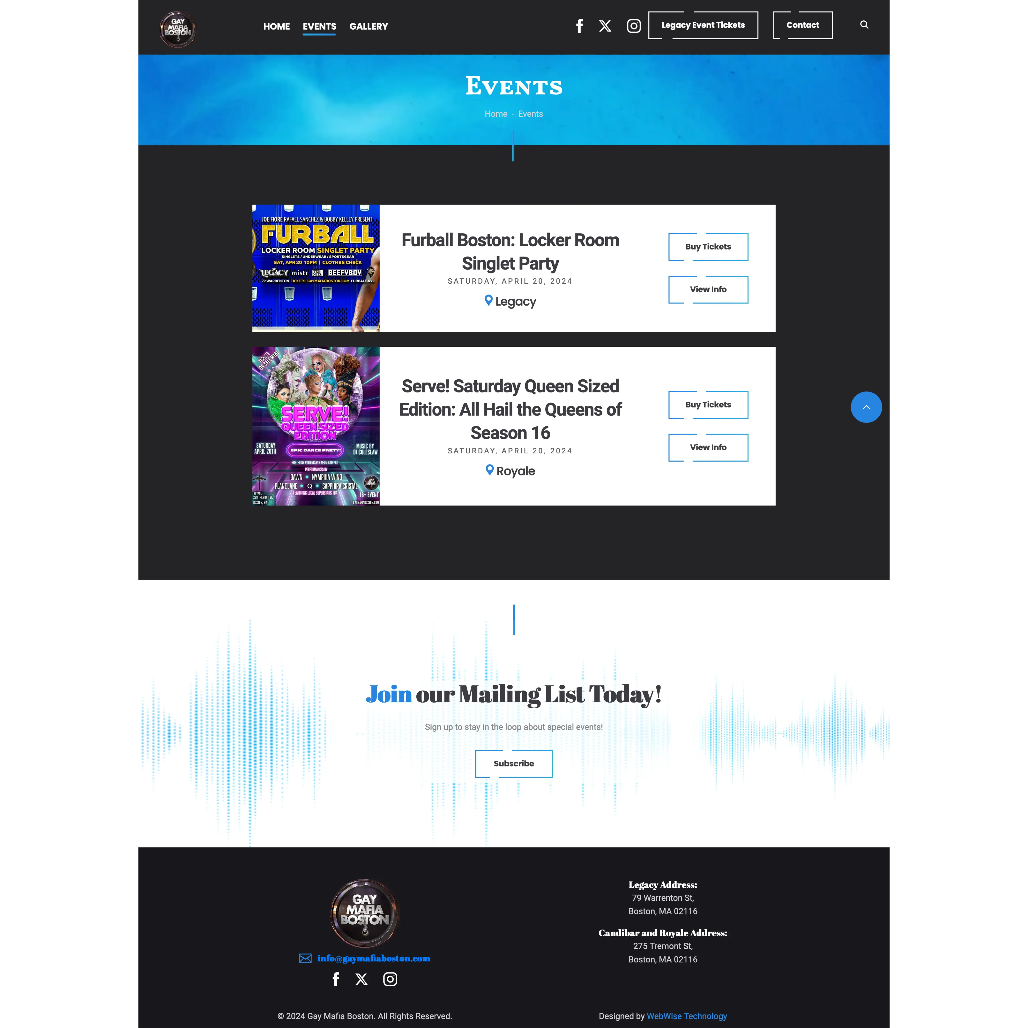 Gay Mafia Boston Events page