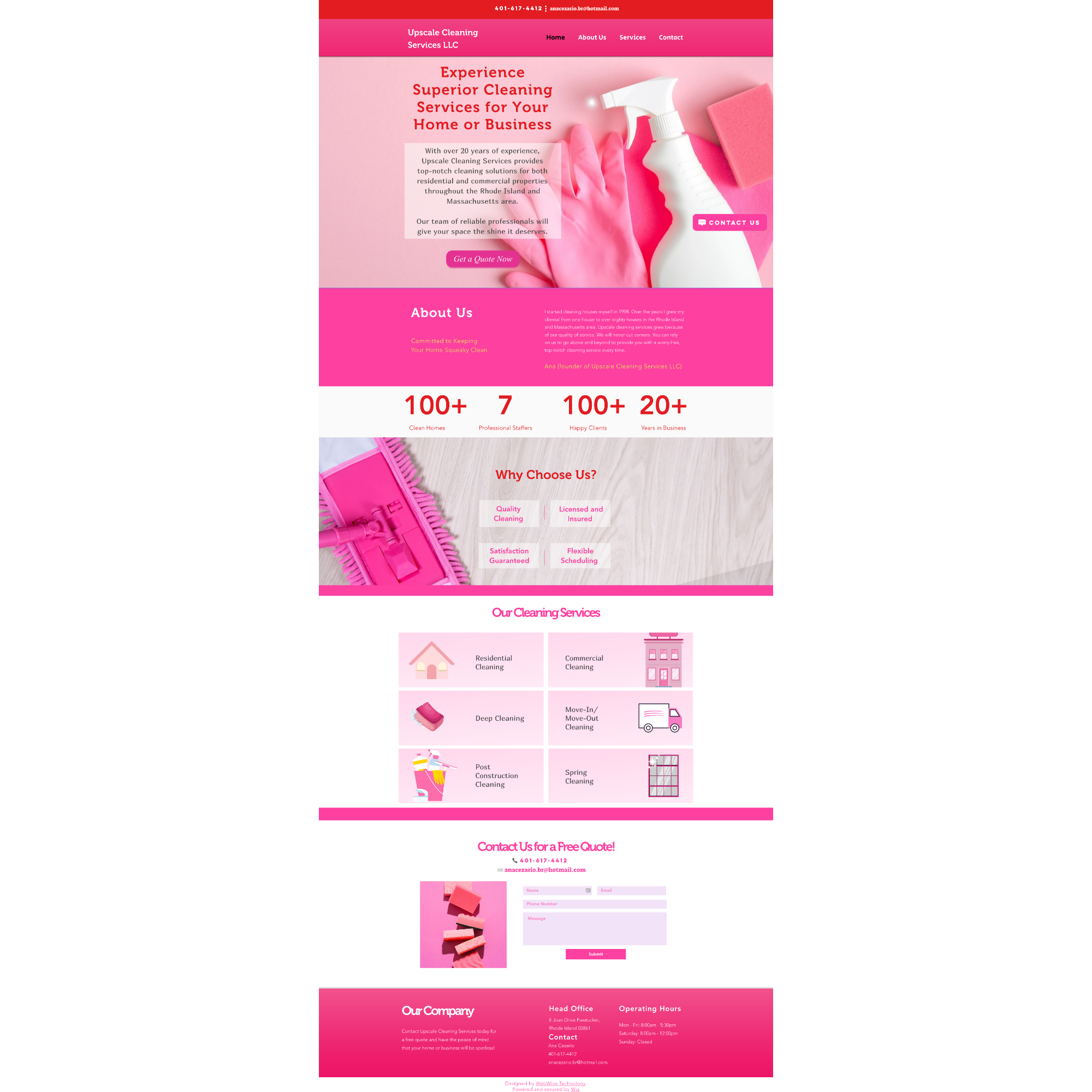Single Page Website design for a local cleaning business using Wix Studio.